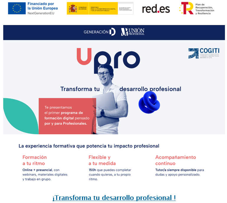 COGITI, los Colegios Oficiales de Ingenieros Técnicos Industriales y Unión Profesional lanzan UPRO, un programa de formación digital gratuito, diseñado por y para profesionales de la ingeniería industrial, y financiado con fondos europeos.